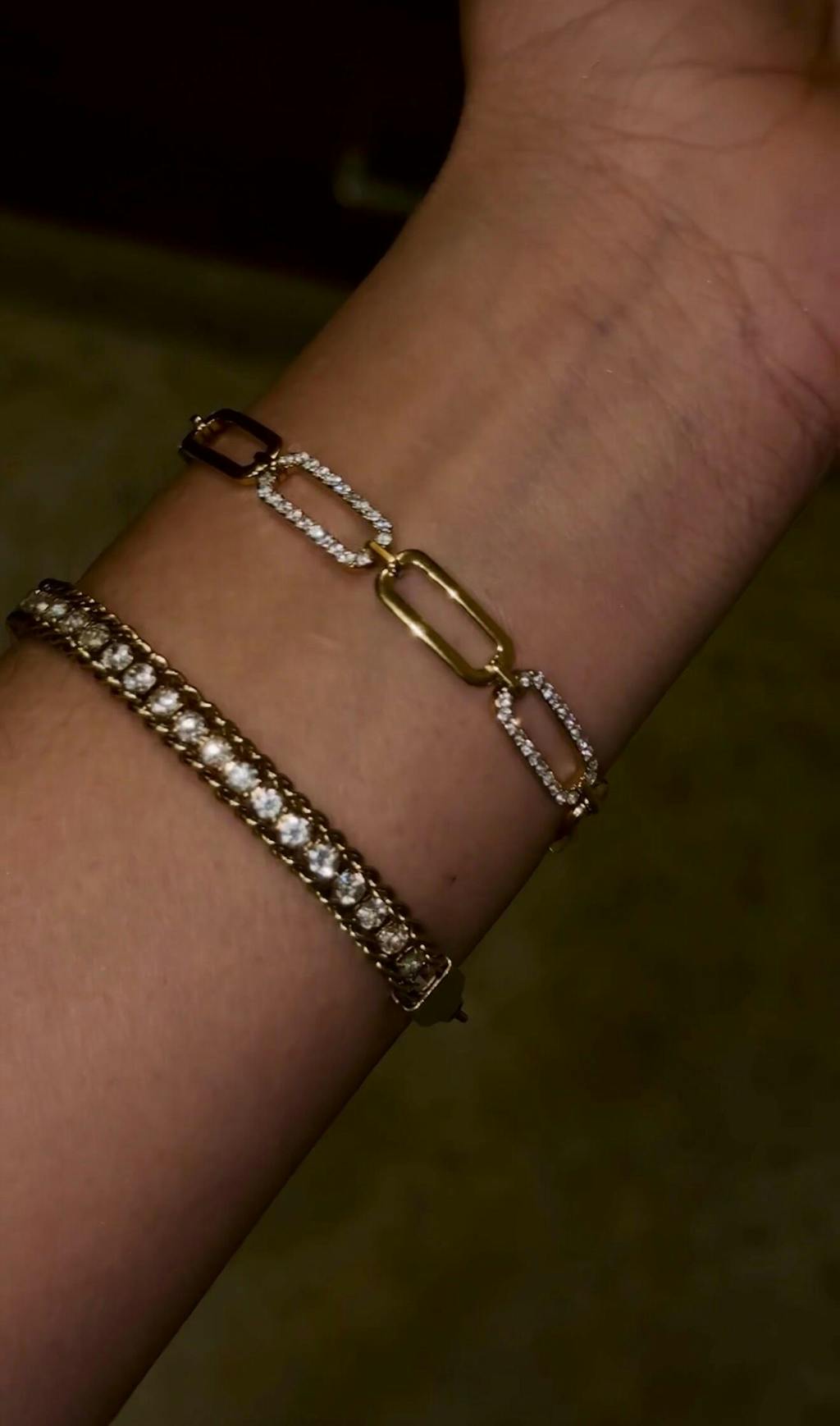 Elevate your elegance with the Ivy Tennis Bracelet, featuring a flawless line of sparkling cubic zirconia stones set along a sleek, woven 18K gold-polished chain. Crafted in durable demi-fine stainless steel, this bracelet is waterproof, anti-tarnish, and hypoallergenic, offering timeless luxury and everyday versatility. Perfect for layering or wearing solo, it shines effortlessly for all occasions.